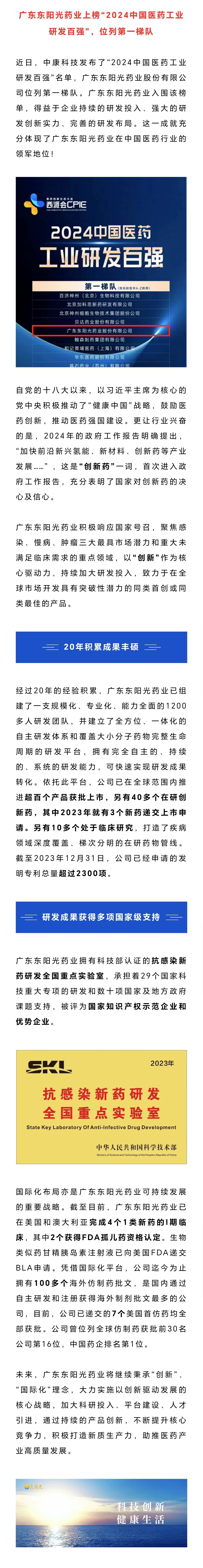 热烈祝贺广东东阳光药业上榜“2024中国医药工业研发百强”第一梯队!